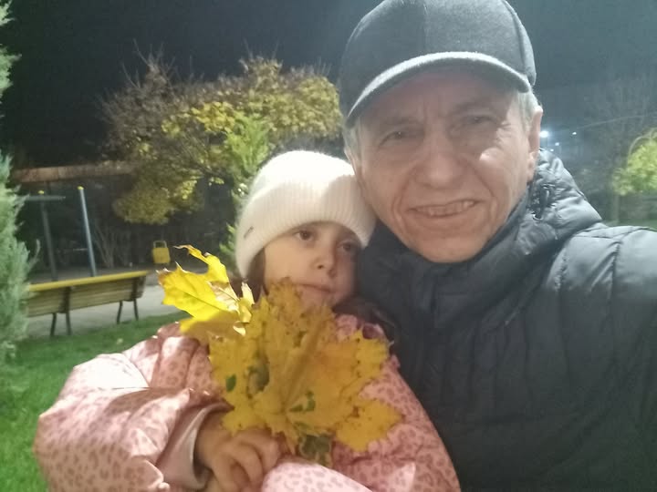 Теперь, в ноябре 2025 года, осень для бывшего политзаключенного времен СССР оказалась довольно радостная, поэтому фоткаемся с внучкой в парке.