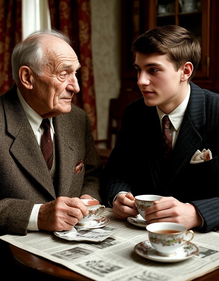 Иллюстрация: 1918. Беседа старшего с младшим. Иллюстрация автора: Татьяны Викторовны, ИИ «Шедеврум».