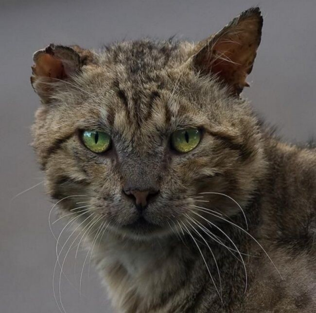 Шерсть, когда-то полосатая, теперь была свалявшейся, грязной и колтунами висела на боках. С обрубком хвоста, с кривой передней лапой, которая срослась под неестественным углом, смотрелся он очень уродливо. Его правая задняя лапа безжизненно волочилась за туловищем, у него не было одного уха, его постоянно слезящиеся глаза, плохо видели, отчего он часто натыкался на препятствия.