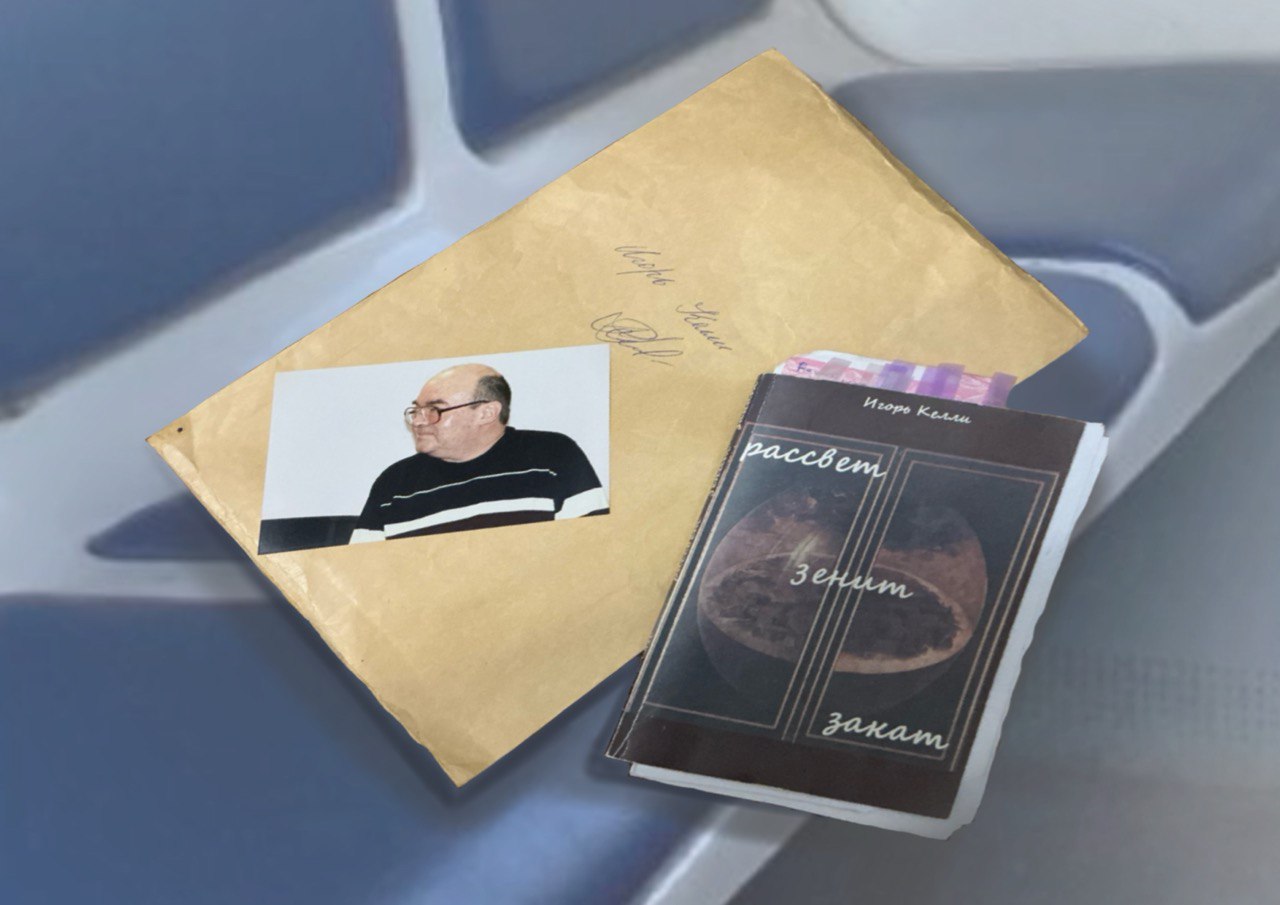 Моего спутника не остановила ни сумка-баррикада, ни страх заразиться. Он положил свой конверт на сиденье. Синей ручкой на нём было написано «Игорь Келли». Потом снял свой бушлат и повесил на крючок напевая: «Одинок в укромной келье, я печаль таю от всех». Его переносица и подбородок были испещрены красными капиллярами, бритые молочные щёки и лысый лоб отражали свет. За очками с коричневой оправой глаза казались по-ирландски веселыми и озорными.