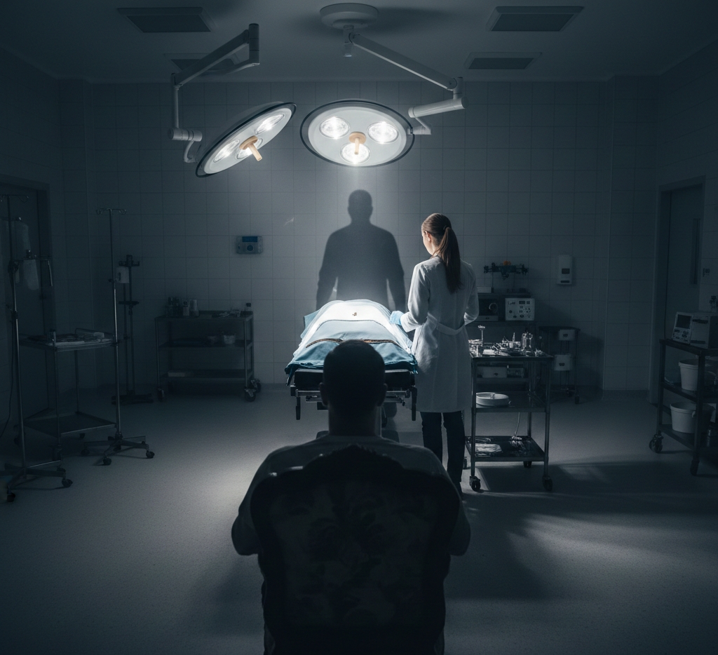 Она подняла взгляд: на дверь, на стеклянные поверхности холодильников, на тёмное окно наблюдательной. Оно обычно сливалось с тенью -но сейчас казалось глубже, темнее, внимательнее.