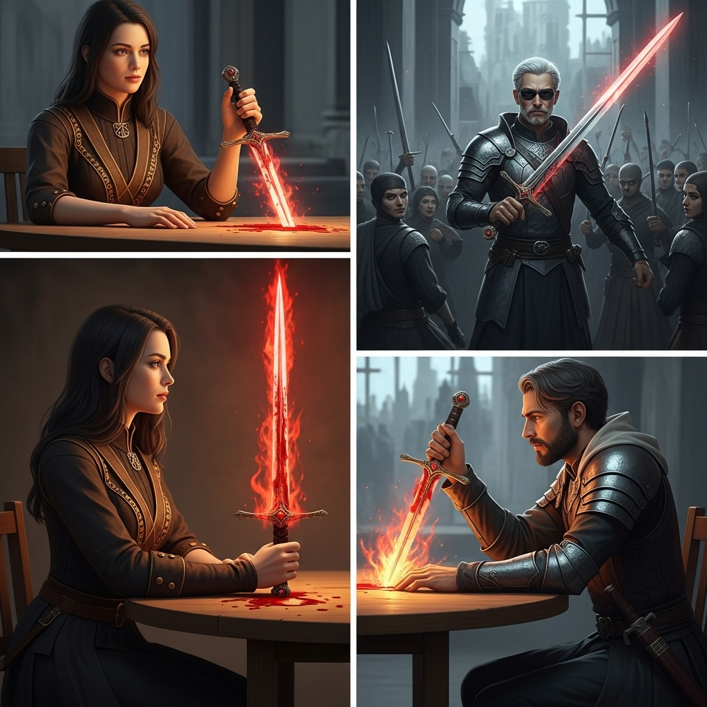 Сериал типа фэнтези. Он (я) получает определенные сверхспособности благодаря магическим процедурам. Сидя за столом напротив нее, поранил руку, капли крови упали на меч, на его конце загорелось красное пламя – он стал волшебным. Также есть волшебный аркан, которым можно сражаться с толпами врагов. Оборачиваясь, поражаю их, рассекаю надвое, снимаю арканом головы. Но вот я встретил того, кто не поддается – перед ним аркан застревает, тормозит, вьется петлями в воздухе. Такого я беру себе в помощники.