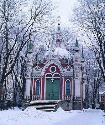 На фото - намолённая часовня Николая Чудотврца, на Преображенском старообрядческом кладбище, в Москве. Единственная такого стиля в России.