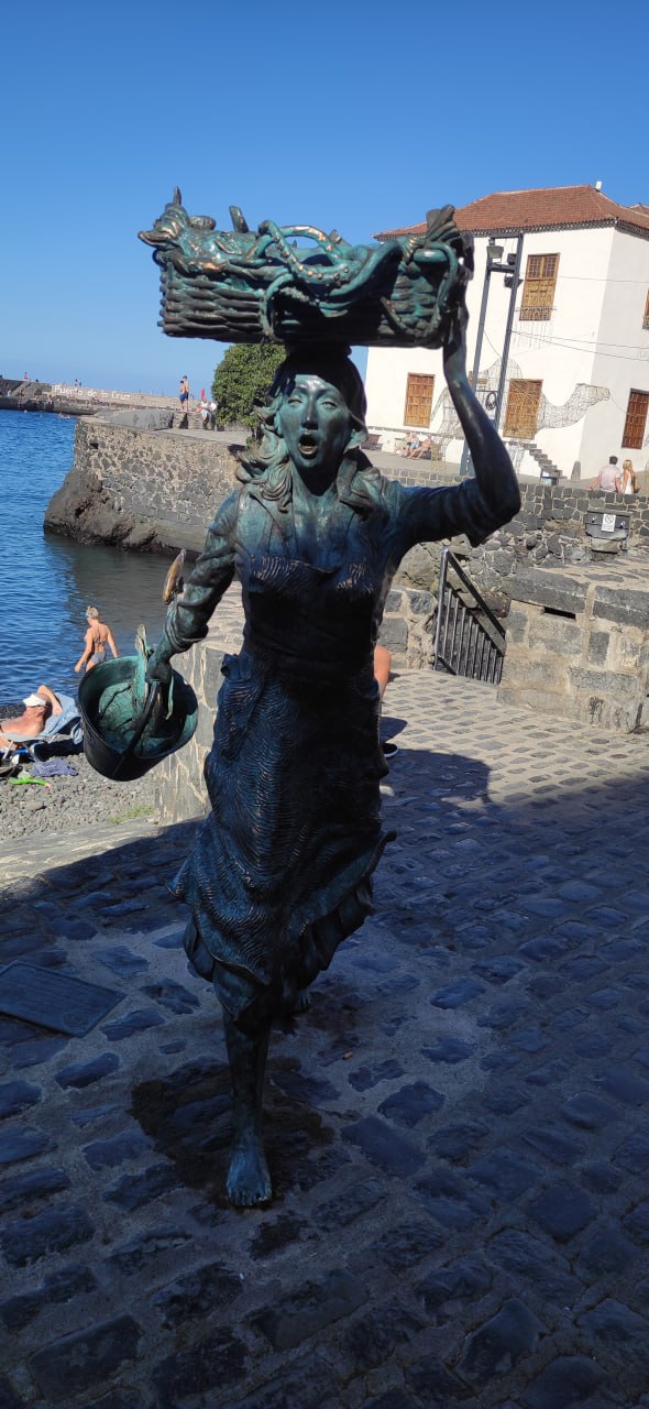 Итак, одна из самых главных достопримечательностей испанского городка Пуэрто-де-ля Крус и одновременно его символ - это бронзовая статуя рыбачки, либо торговки рыбой. А что вы хотели, вполне себе характерный образ местной жительницы этого славного портового города.