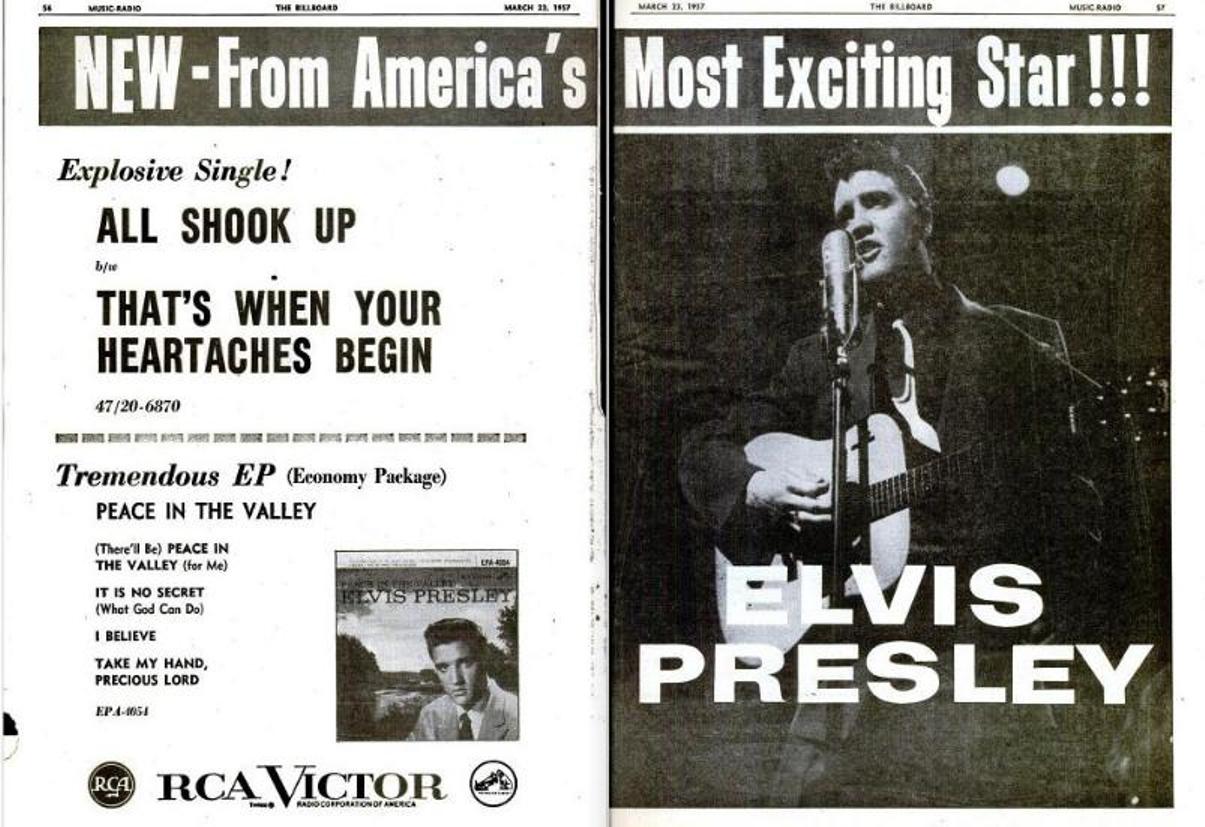 На фото страница журнала «Billboard» с рекламой 45-ки Пресли. 1957 год – год начала восхождения певца к славе.