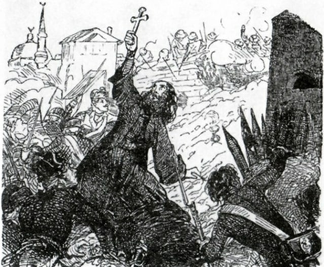 Служивший в нескольких кампаниях под началом Суворова генерал-майор Лев Николаевич Энгельгардт через годы вспоминает: «При штурме отличил себя Полоцкого полка священник. Полковник Яцунский, командир сего полка, был убит, полк побежал; тогда тот поп с крестом в руках закричал: «Стой, ребята, вот ваш командир!» (указывая на крест) — и сам бросился пред полком к крепости; полк пошёл за ним, и священник из числа первых взошёл на стену, за что награждён был наперсным золотым крестом на георгиевской ленте».
