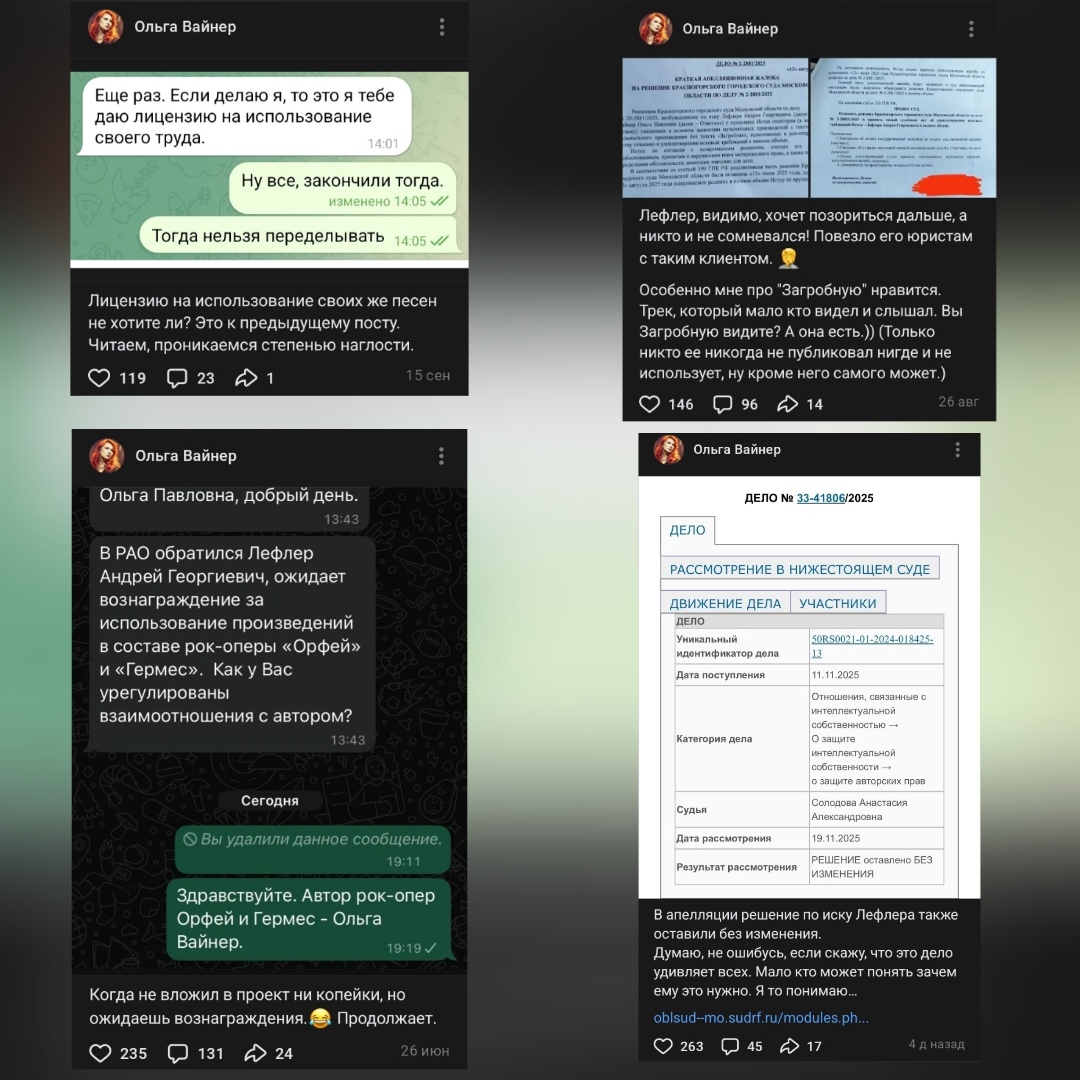 Лефлер, как правообладатель, подтверждает свои авторские права на звукозаписи, что регулируется статьями 1253, 1255 и 1259 Гражданского кодекса РФ. Несоблюдение судом и РАО этого положения — нарушение его исключительных прав.