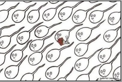 6. И главное: ваша врожденная скромность и порядочность не позволяют вам вести себя некорректно и эгоистично по отношению к ста сорокам миллионам таких же, как вы, сперматозоидов, обгонять их, оттеснять и оталкивать, чтобы лидировать и победить.