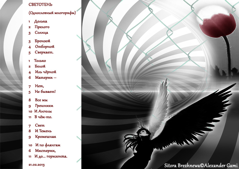 Однословный многорифм «Светотень» и иллюстрация к нему.