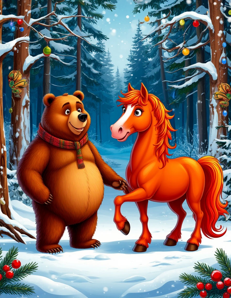Мария Потаповна спала. Мишутка потряс её за плечо. Она отмахнулась от него, как от надоедливой пчелы, и продолжила сосать лапу. Медвежонок не знал, что делать. Он сел на кровать и включил телевизор. Шли лесные новости. На экране ведущая Сорока трещала: «Срочное сообщение. Дед Мороз объявил в розыск красную лошадку с огненной гривой. Он просит всех, кто знает о её местонахождении, сообщить лично ему по телефону за вознаграждение».