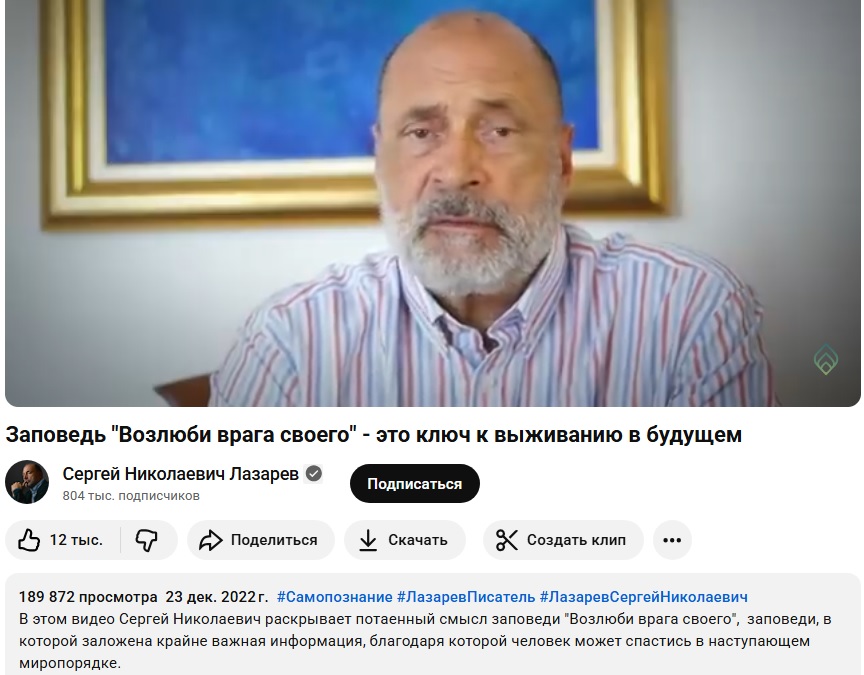 На его канале 804 тыс. тупых подписчиков. На его сайте https://lazarev.ru/ цены на его курсы. ЛжеУчитель и шарлатан. Гонит пургу для дебилов. Йа его уже разоблачал в беседе 596 от 21.1.2023 г.