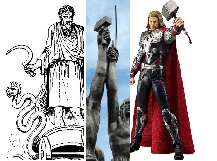 Так вот проявилось странное родство между Главными Персонажами наших двух фрагментов. Это Серп и Молот. Причем, они поняты не как орудия труда и не как виды оружия, а как магические инструменты, направленные против безумных, беспощадных великанов-ётунов, Рынка и Капитала!