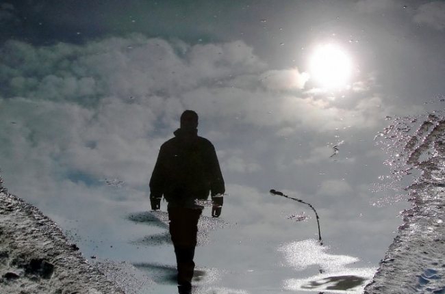 В замёрзшей луже светит отражаясь,
