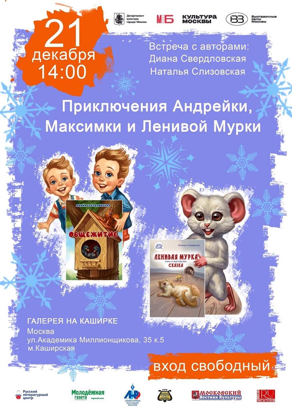 Приглашаю вас вместе со своими детьми или внуками 21 декабря к 14.00 в московскую Галерею на Каширке. В этот день состоятся «Приключения Андрейки, Максимки и Ленивой Мурки».