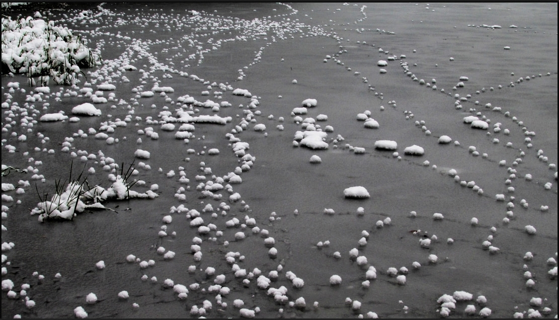 Сначала я подумал, что, может быть, это вершины водных растений, выступающие из воды напудрены снегопадом.