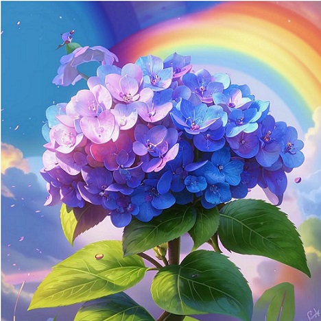 Сердце девочки наполнилось надеждой, что сегодня сбудется её мечта! Она быстро достала краски и начала рисовать. Каждый мазок был полон вдохновения, и вскоре на холсте возникла картина, наполняющая душу светом – яркие цветы гортензии под радугой.