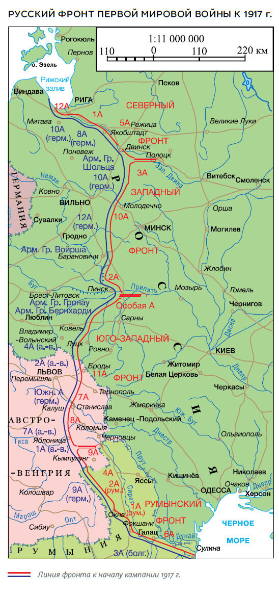 Линия фронта накануне Февральской революции, т.е. незадолго до свержения Николая II, проходила не по территории Германии, а большей частью по территории России: были оккупированы Польша, половина Прибалтики и половина Белоруссии.