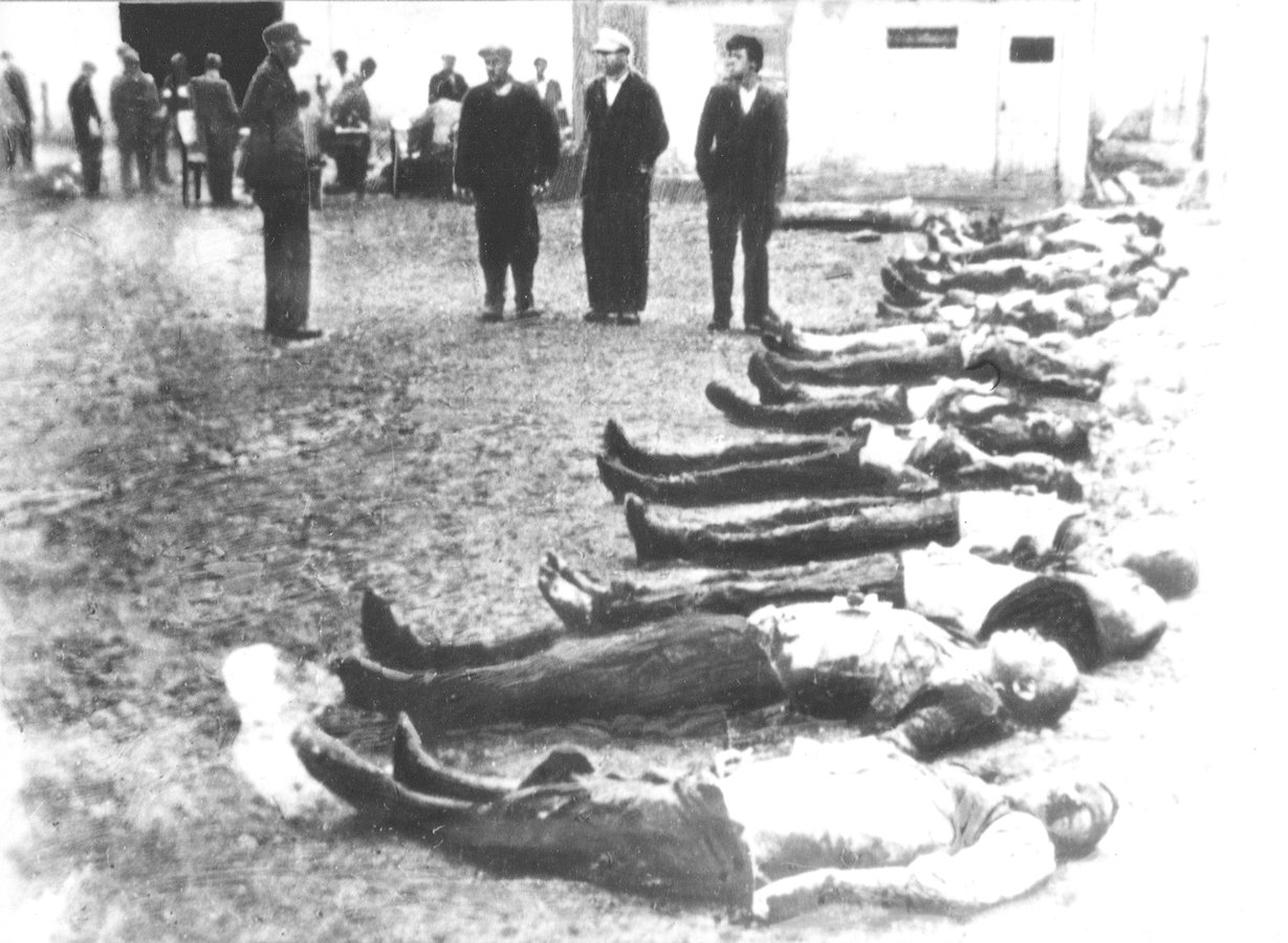 Тела погибших, замученных и казненных НКВД в тюрьме на Лонцкого, июль 1941 года (фото немецкого военнослужащего)