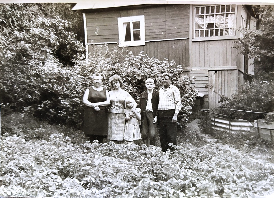 Понятно, что все там зарастало, но домик-то оставался стоять -- такая вот деревянная достчатая дача состоявшая из небольшой терраски где стоял стол и с ним рядом могло поместиться еще три самодельных добротных таких табурета (там много чего было самодельного -- даже некоторые вилки самодельные были -- одна помню была из нержавейки со старательно обработанной и плотно державшейся на алюминиевых заклепках ручкой из оргстекла), это была наша столовая; еще на терраске стояла маленькая кирогазка, это такая горелка работавшая на керосине, и на которой бабушка иногда что-то нам готовила. Дальше была отделенная дверью комнатка с диваном, кроватью и большим круглым столом. Висело старинное в вычурной явно самодельной черной раме мутноватое зеркало, на каждом окошке были простенькие шторки, а стены обклеены голубоватыми бумажными обоями. К дачке еще был пристроен сарайчик, и все это было покрыто железной крышей (помню, как дедушка зачищал ее наждачкой, а потом красил. Как-то раз не смотря на все его эти старания, краска почему-то стала облезать, я спросил его -- отчего это? Дедушка ничего не ответил, видно было, как жалко ему было пропадающих на глазах своих трудов). Все и сама дачка и все в ней было сделано довольно простенько, но с любовью и довольно добротно, даже подпол, выложенный кирпичной кладкой, еще в даче был.