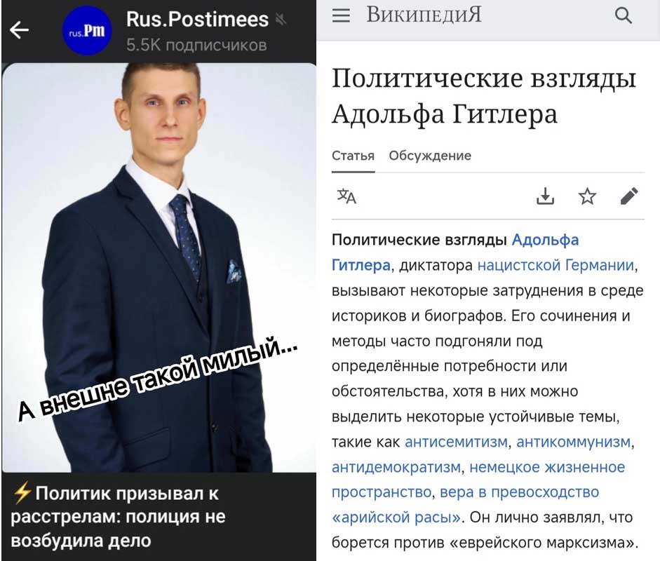 Что будет дальше, очевидно. Тем более, что в подконтрольной западным спецслужбам Википедии уже открыто и толерантно пишут, что "политические взгляды германского диктатора Гитлера вызывают некоторые затруднения в среде историков и биографов". То есть, парень был не так уж и плох. А вот Советский союз - не победитель фашизма, а Империя Зла, оккупанты, планировавшие захват "свободного мира". Благодаря этому, в частности, появились манкурты с русофобами и у нас. Вижу это каждый день, как учитель и журналист.