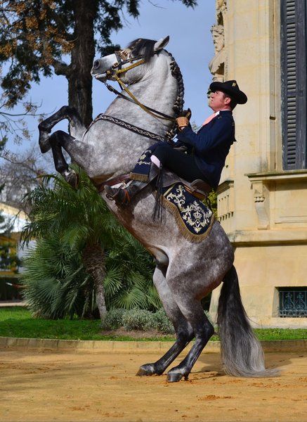В 17-ом веке оформилась испанская(андалузская) школа верховой езды,где лошадей обучали очень сложным элементам выездки и беспрекословному подчинению всаднику.Все это должно было применятся на войне,в конному бою для спасения наездника и победы над врагом.
