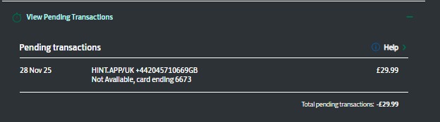 * How much had I paid to Hint App/UK London on 19th November 2025?