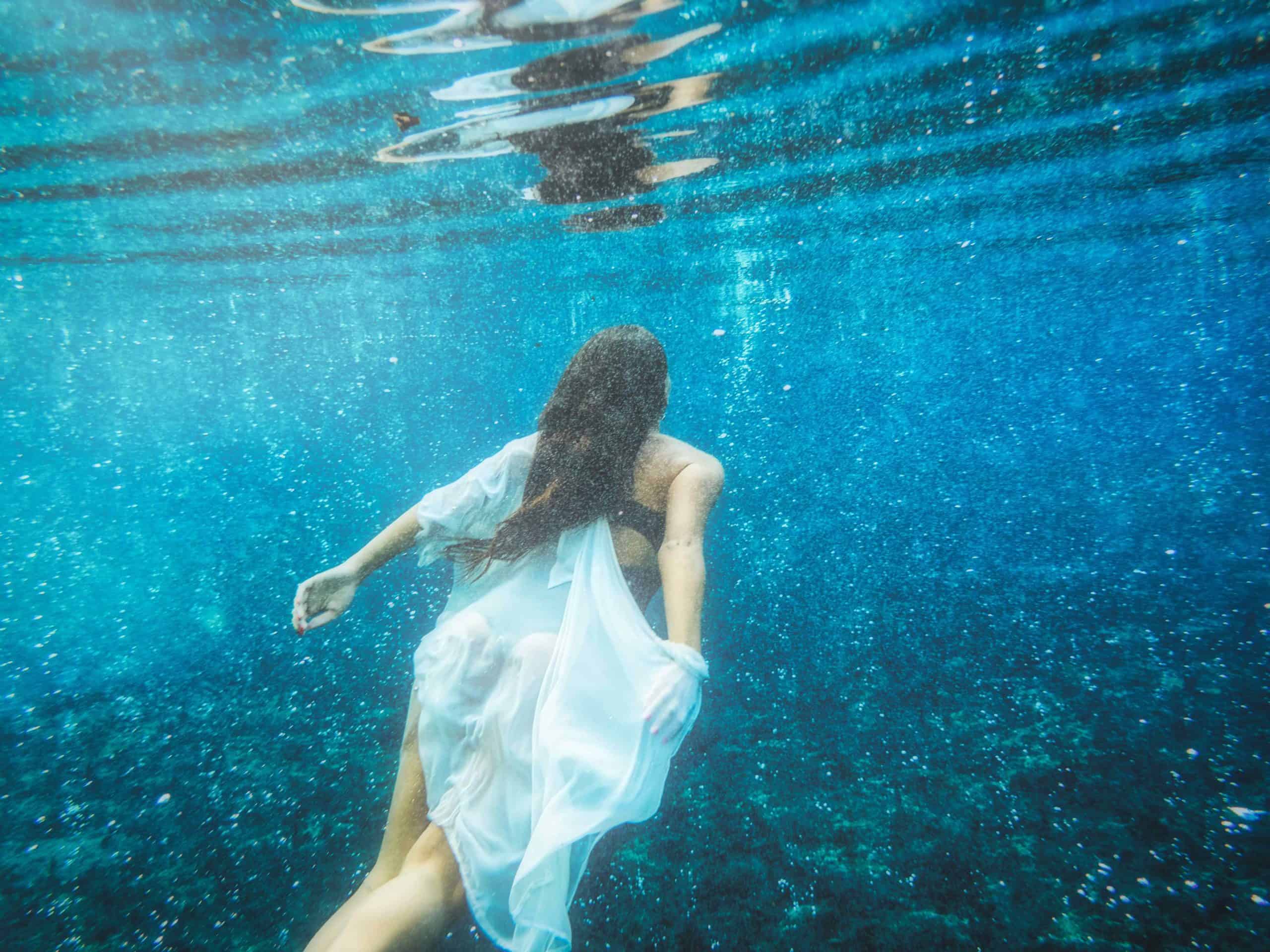 Она не раз видела себя, как в кино. медленно опускающуюся на дно с развевающимися волосами.
