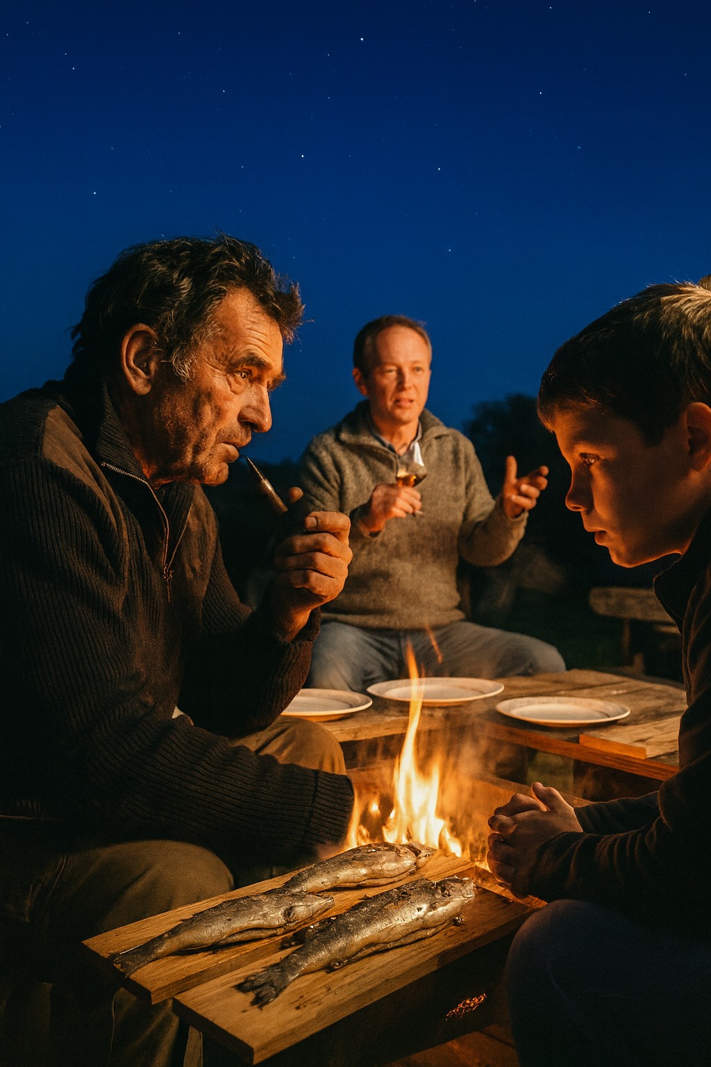 — Ну вот и все, наберёмся терпения, пока рыба приготовится. Надеюсь, ты не сильно проголодался. У меня слюнки текут, глядя на эту рыбу.