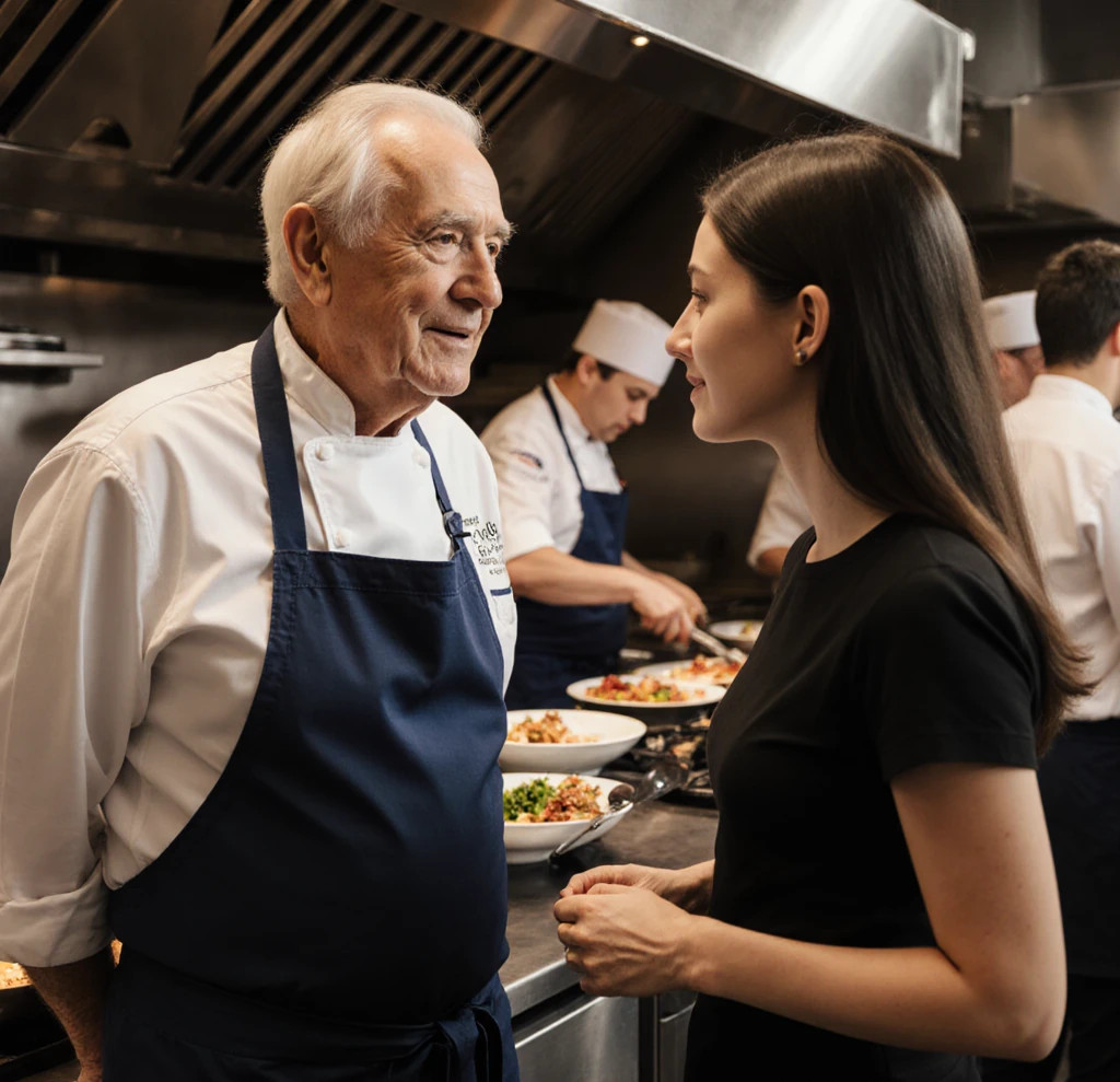 Девушка попыталась юморить, потому как на кухне больше специй чем людей. Шеф юмор оценил лёгкой улыбкой и продолжил.