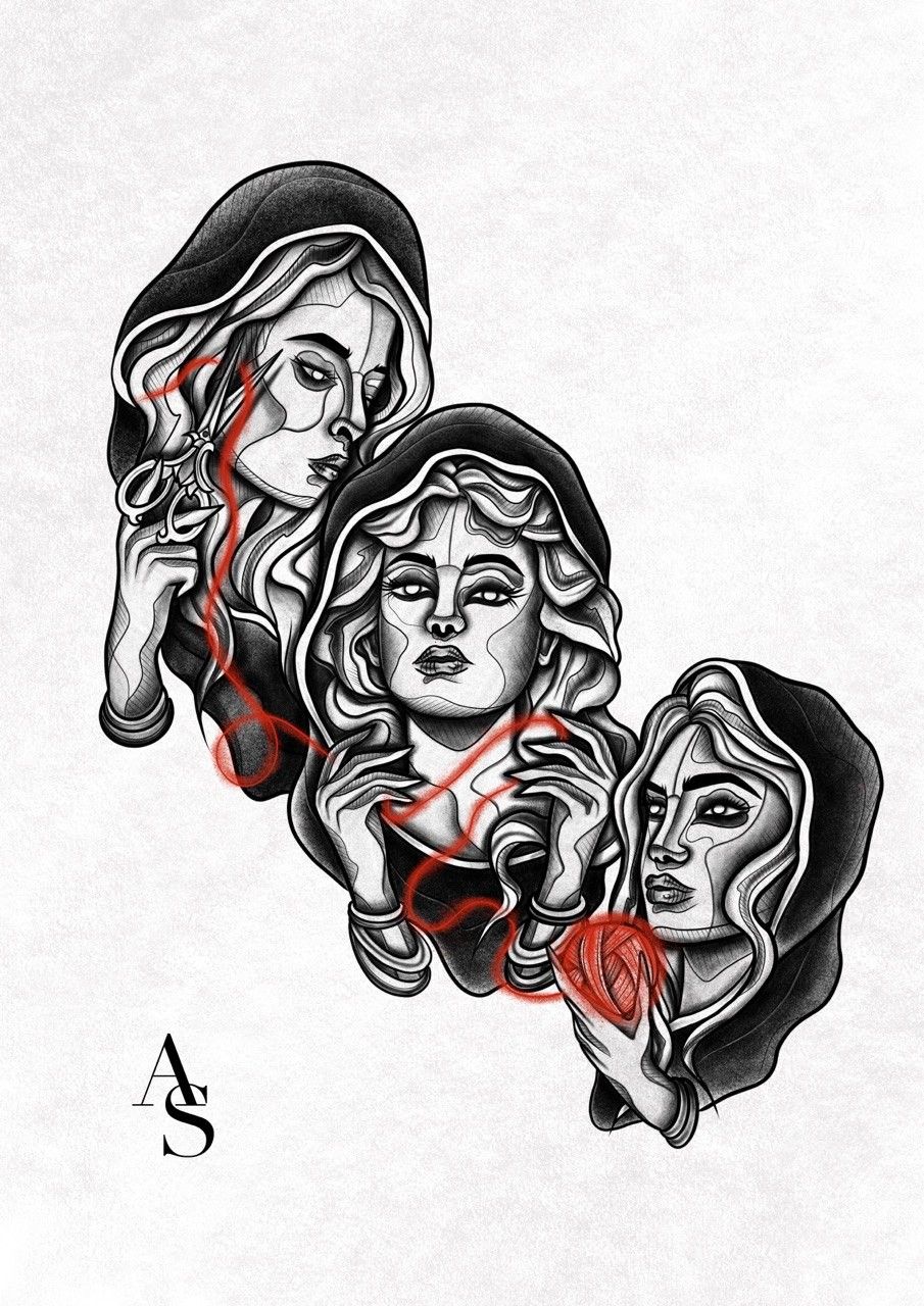 В одну их душных ночей после посещения древних руин, ей приснился сон. Она отчётливо слышала разговор мойр, видела сестёр-богинь - Лахесис, Атропос и Клото.