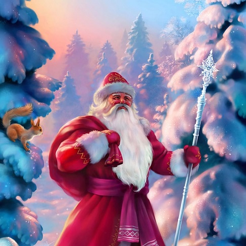 Небо серое от туч. Прячет солнце тусклый луч. Льдом покрытая река. В белом снеге берега. Ёлки , сосны и берёзы в белом инее они, то дыхание мороза-Декабря коротки дни. Дед Мороз, скипетр в руке, и подарочков мешок; село видно вдалеке, труб курится там дымок. И на тройке лошадей Дед Мороз спешит скорей. Скоро будет новый год. Поздравлять пора народ. Закрутила снегом вьюга и пошла плясать по кругу. Всё вокруг белым бело, и сугробов намело. Белизна и красота! Стук Мороза в ворота:-Открывайте поскорей! Привечайте вы гостей! Дети хором без умолку:-Зажигай скорее ёлку и подарки раздавай Мороз- Ёкарный бабай! - Ах, детишки шалунишки, не шумите-это слишком.