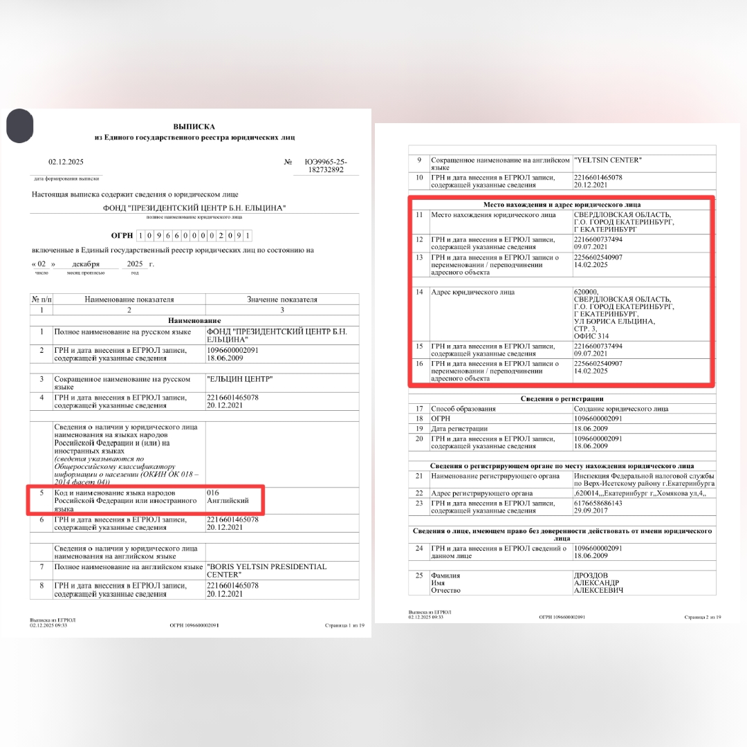 Если Ельцин Центр, ведя деятельность в России, не указал в официальных документах русский язык, несмотря на необходимость его использования в рамках деятельности организации, это может повлечь нарушение следующих статей и положений российского законодательства: