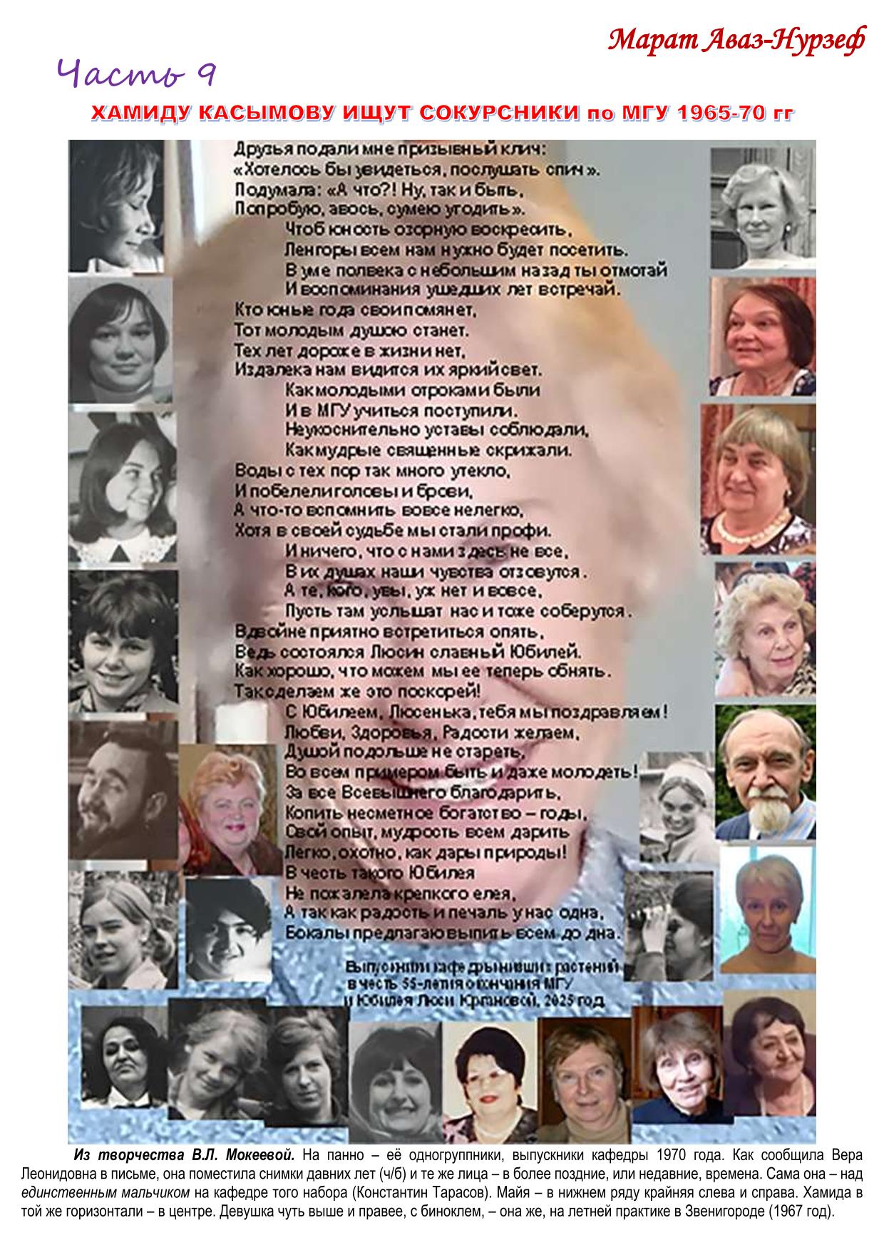 9. Хамиду Касымову ищут сокурсники по МГУ 1965-70