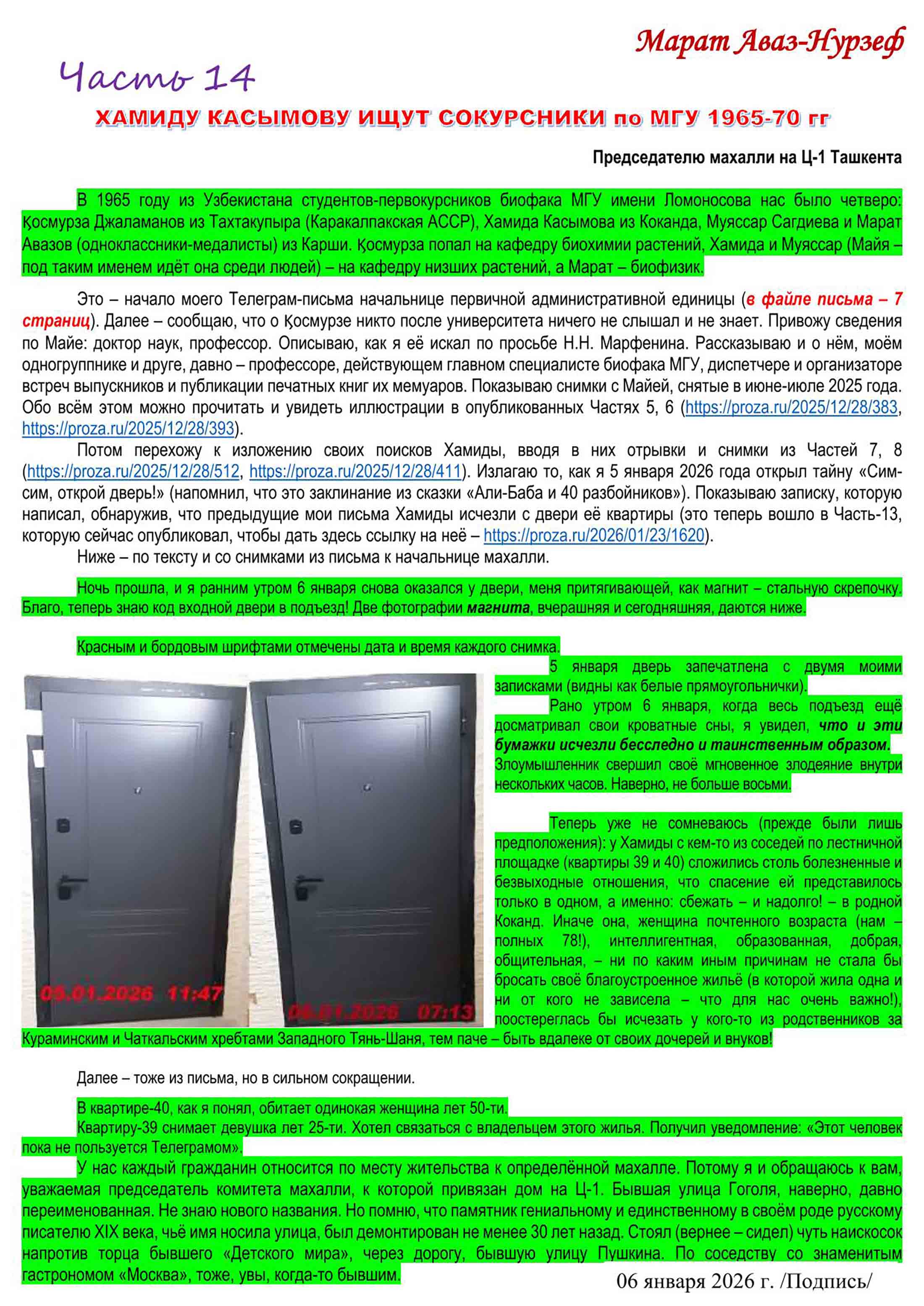 14. Хамиду Касымову ищут сокурсники по МГУ 1965-70